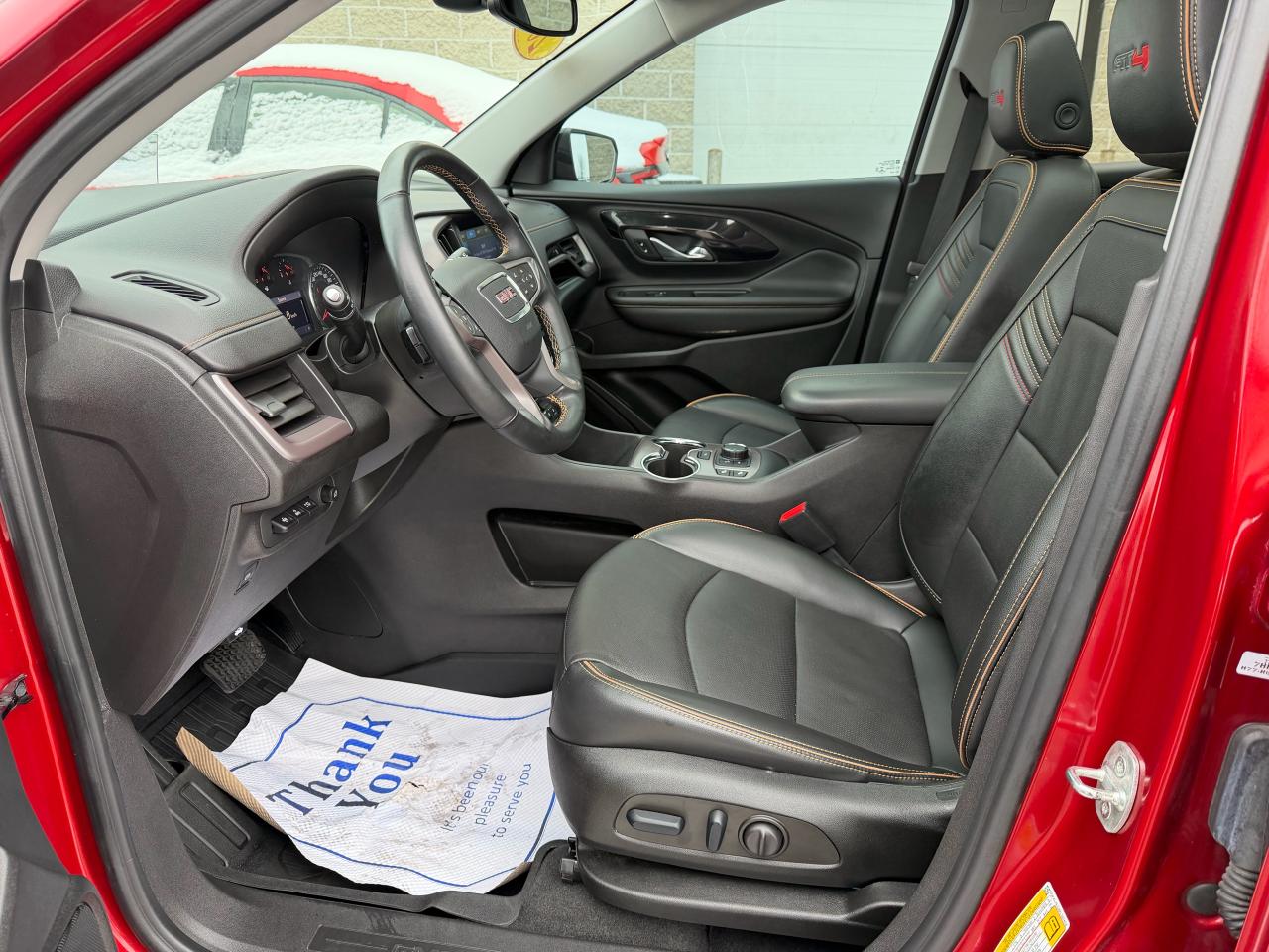 WOW!! Check out this like new 2023 GMC Acadia AT4!!! Amazing colour combo with black leather interior!! Fully equipped including: Bose audio, heads-up display, panoramic sunroof, leather interior, heated seats and steering wheel, gloss black alloy wheels, remote start, driver memory seat settings, power driver seat, back-up camera, navigation, touch-screen radio, bluetooth hands-free, SiriusXM satellite radio and the list goes on!!