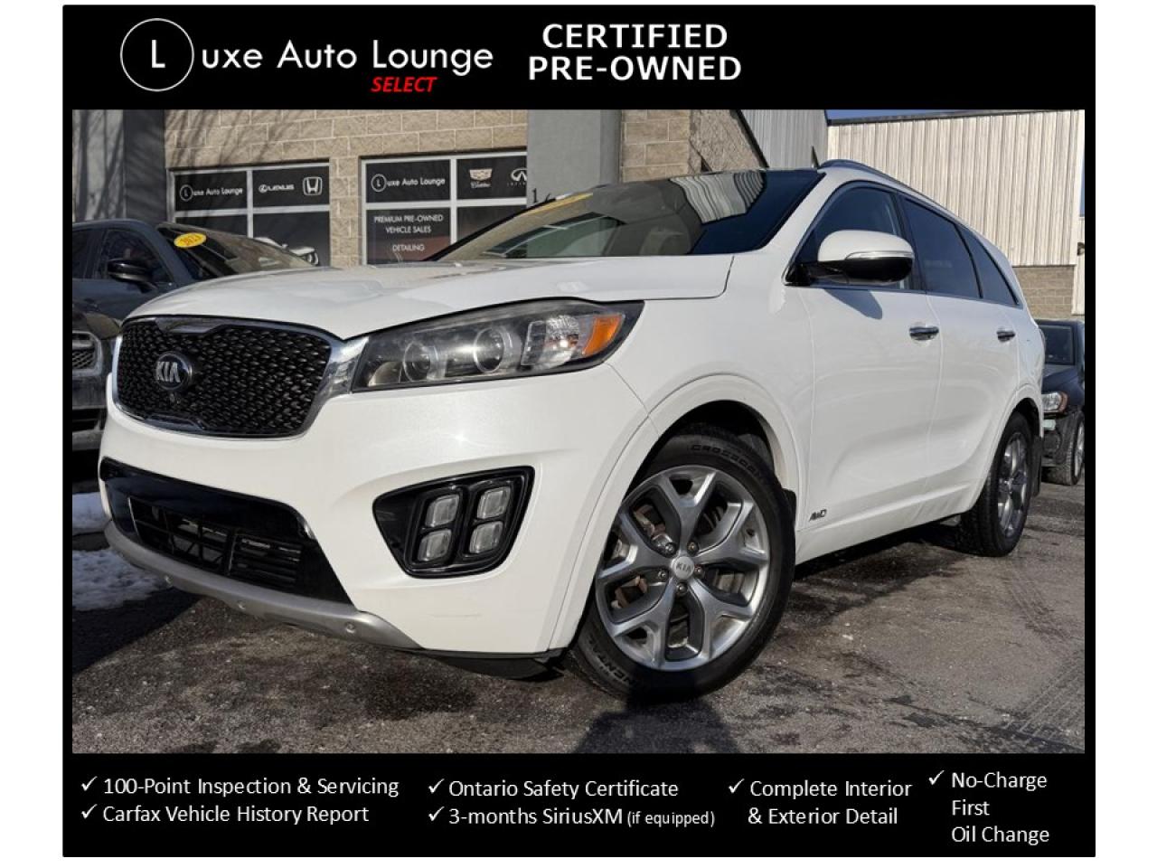 WOW!! CHECK OUT THIS FULLY-LOADED, 7-SEATER, AFFORDABLE SUV!! This 2016 Kia Sorento SX V6 has it all, including: heated and cooled seats, leather, heated steering wheel, power panoramic sunroof, touch-screen radio, back-up camera, navigation, SiriusXM satellite radio, power front seats, premium audio system and more!