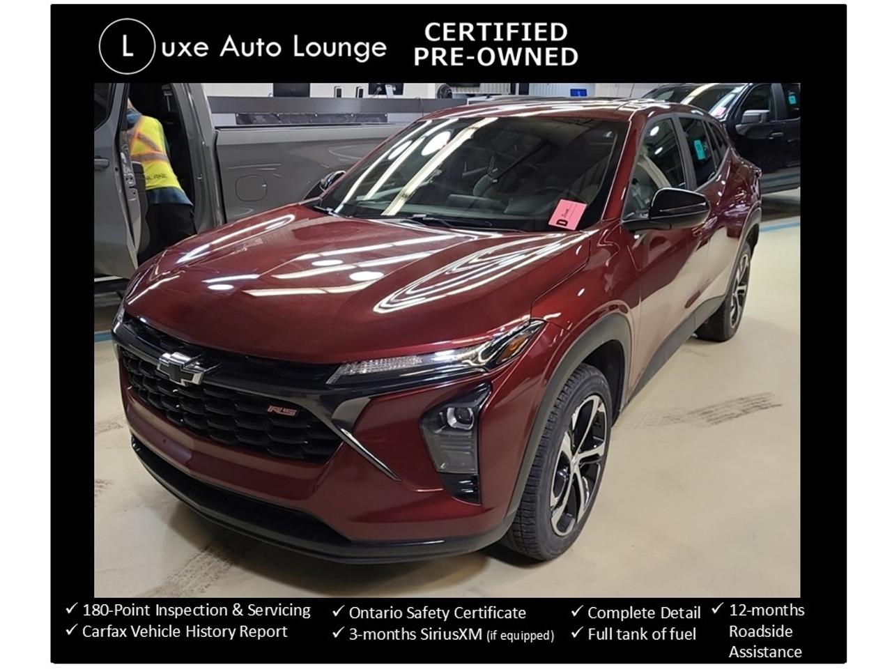 LIKE NEW AND SUPER AFFORDABLE!! This 2024 Chevrolet Trax 1RS has everything you need, including: POWER SUNROOF, heated seats and steering wheel, remote start, back-up camera, bluetooth hands-free, SiriusXM satellite radio, Apple CarPlay/Android Auto, alloy wheels and more!